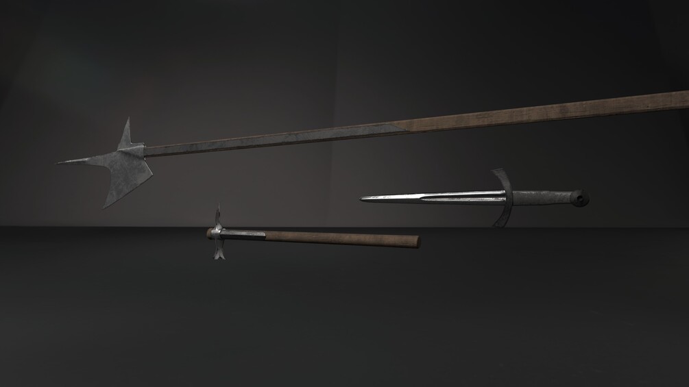 - There are common medieval weapons that are already textured and game ready.